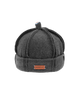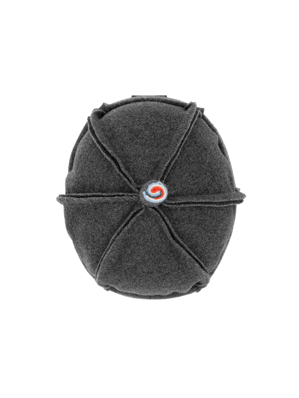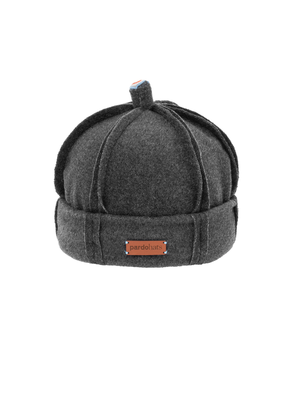 Structured grey wool beanie with rounded seams and a contrasting top button.