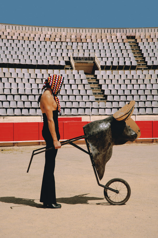 XL multicolor crochet bandana in a triangular shape, versatile enough to be worn on the head, around the neck, or styled in different ways.