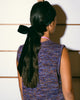 The design elements of Conejo include premium black raw silk that graces your head with a touch of timeless grace. The distinctive feature of this item is the scrunchie adorned with a striking black cotton velvet bow, adding a touch of opulence that ensures you stand out. Whether you're dressing up for a special occasion or adding a touch of glamour to your everyday attire, Conejo serves as the perfect finishing touch, exuding both charm and poise. Its elasticity guarantees a snug yet gentle hold, making it ideal for a sleek ponytail, a chic bun, or a playful half-up, half-down hairstyle.