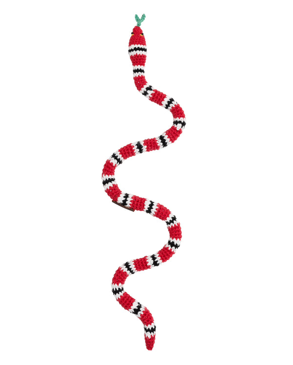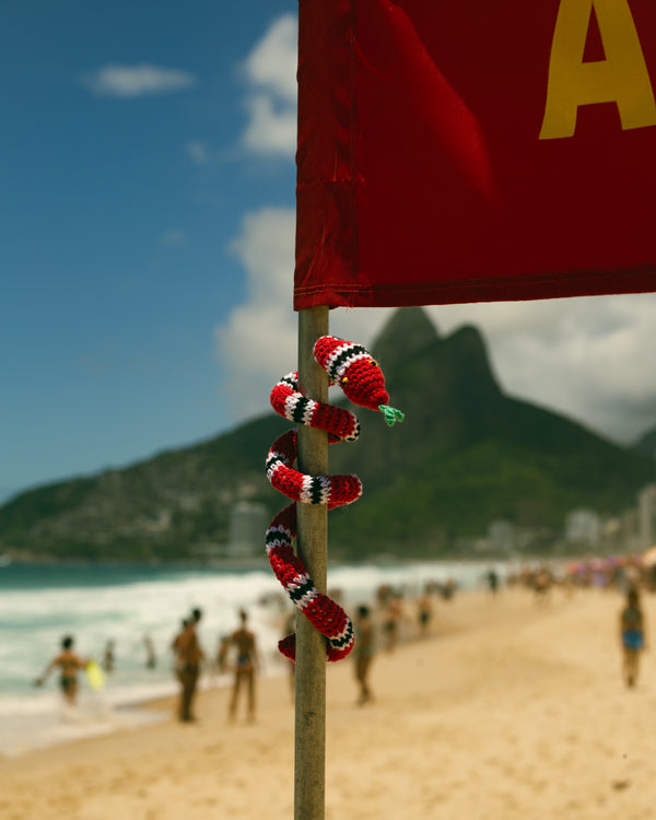 Handmade upon order in Barcelona, Serpiente Coral is a handcrafted tropical snake crafted into a stunning crochet necklace. Its vibrant color palette makes it the perfect accessory to elevate your summer looks.